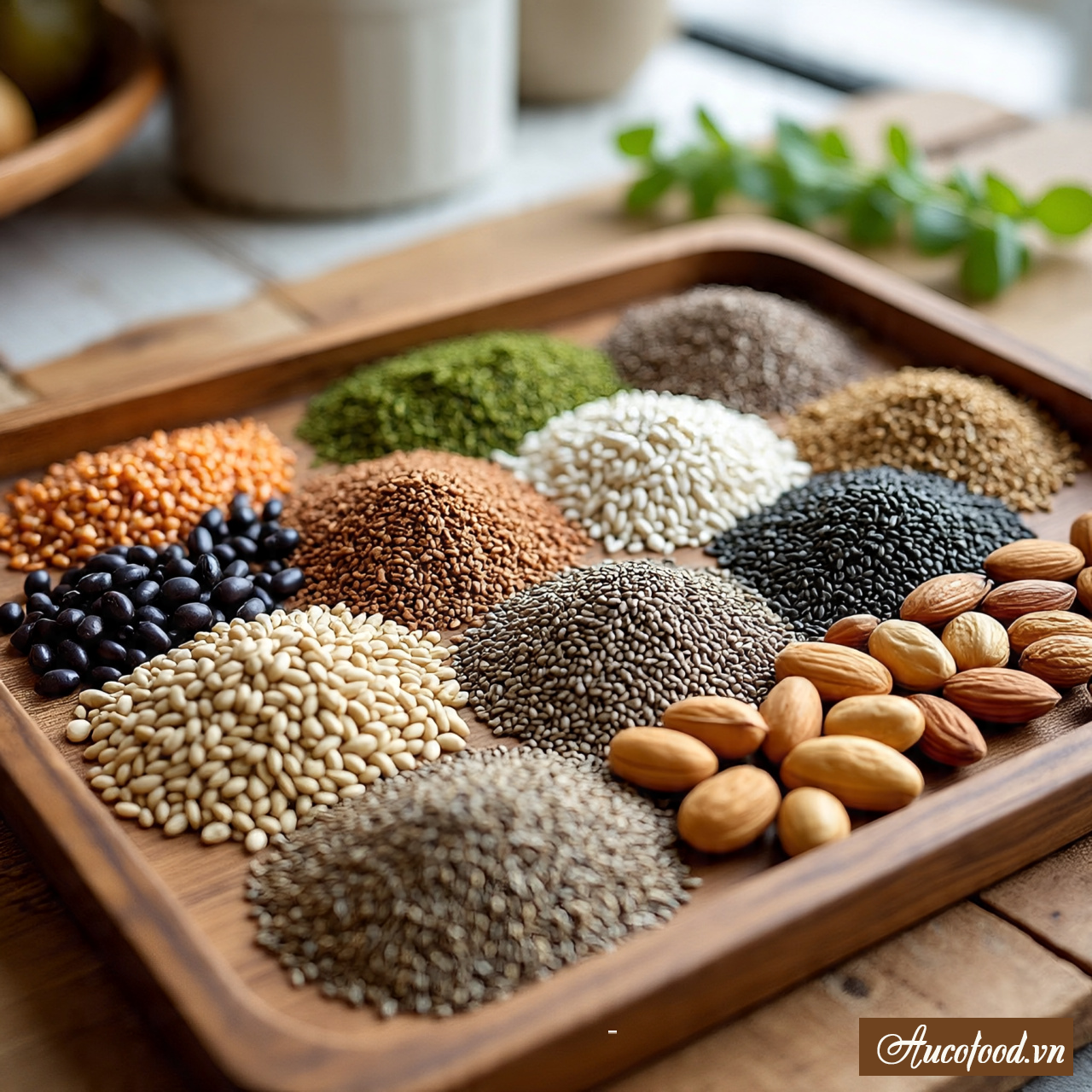 Kê, Hạt sen, Vừng đen, Hạt chia, Hạt bí xanh, Khoai mài, Diêm mạch, Hạt lanh,